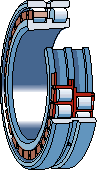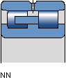 Hochgenauigkeits-Zylinderrollenlager, Baureihe NN30..KTN/SP, zweireihig, kegelige Bohrung, drei Führungsborden am Innering, bordloser Außenring, zwei Kammdeckelkäfige aus Polyamide 66.