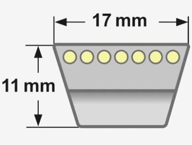 Klassische Keilriemen, flankenoffen, formgezahnt, Profil X17 / BX. Flankenoffene, formgezahnte Keilriemen gibt es als klassische Keilriemen oder als Schmalkeilriemen. Die Riemen sind kraftschlüssige trapezförmige Treibriemen aus Neopren, deren Kraft in den Flanken übertragen wird. Im Gegensatz zu den ummantelten Keilriemen haben die flankenoffenen, formgezahnten Keilriemen keine Textilummantelung, sind dafür aber gezahnt. Einsatzgebiete für dies Riemen finden sich im Maschinenbau.