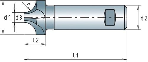 MAYKESTAG Viertelkreisprofilfräser DIN 6518 B Typ N Radius 10 mm Nenn-Ø 28 mm HSS-Co DIN 1835 B Schneidenanzahl 4 · HSS-Co · DIN 6518 B · Typ N · Zylinderschaft mit Mitnahmefläche · zum Fräsen von Bau-, Einsatz- und Vergütungsstählen · rechtsschneidend Eigenschaften: • Schaft-Ø d2: 25mm • Werkstoffeignung INOX: bedingt geeignet • Gesamtlänge l1: 85mm • Ø d3: 8mm • Werkstoffeignung Guss: bedingt geeignet • Werkstoffeignung Stahl: sehr gut geeignet • Form: konkav • Werkstoffeignung NE-Metalle: bedingt geeignet • Nenn-Ø d1: 28mm