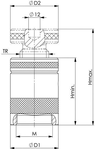 AMF Schraubbock Nr. 6400 Größe 70 mit flacher Auflage Höhe 50 - 70 mm · mit flacher Auflage · Spindel: Trapezgewinde selbsthemmend, mit Endsicherung · Vergütungsstahl, lackiert · durch die robuste Bauart funktionieren die Schraubböcke mit stufenloser Verstellbarkeit auch bei größter Beanspruchung sicher und genau Eigenschaften: • Tragfähigkeit max.: 100kN • Zentrierloch-Ø: 12mm • H max.: 70mm • D2: 50mm • TR: 30 x 4mm • H min.: 50mm • D1: 50mm