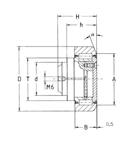Präzisions-Radiallager. • Die Außenringe sind aus Einsatzstahl 20 CrMnTi gehärtet 58-62 HRC • Die Innenringe sind aus Stahl 100 Cr 6 gehärtet 58-62 HRC • Flachköpfige Wälzkörper aus Stahl DIN 100 Cr 6 gehärtet 60 – 65 HRC • Anschweißbolzen aus C20 (Werkstoffnr. 1.1151) • Nachschmierbarkeit für Rollen 4.054 – 4.064 • Einsatztemperatur der WINKEL-Rollen beträgt –20 °C bis +100°C • Hochtemperaturrollen können bis 250 °C Umgebungstemperatur eingesetzt werden. • Die max. Verfahrgeschwindigkeit der WINKEL-Rollen in Stahlausführung beträgt 1,5 m/s, Heavy-Duty bis max. 2 m/s. Für die Ausführung in VULKOLLAN® und POLYAMID beträgt die max. Verfahrgeschwindigkeit 6 m/s. • Das Spiel zwischen Axialrolle und Profilinnenseite sollte max. 0,5 mm betragen. • Bolzentoleranz –0,05 mm ֩• Rollen werden bei der Montage mit Schmierfett Grad 3 (z.B. Shell Gadus S2 V100 3) befettet
